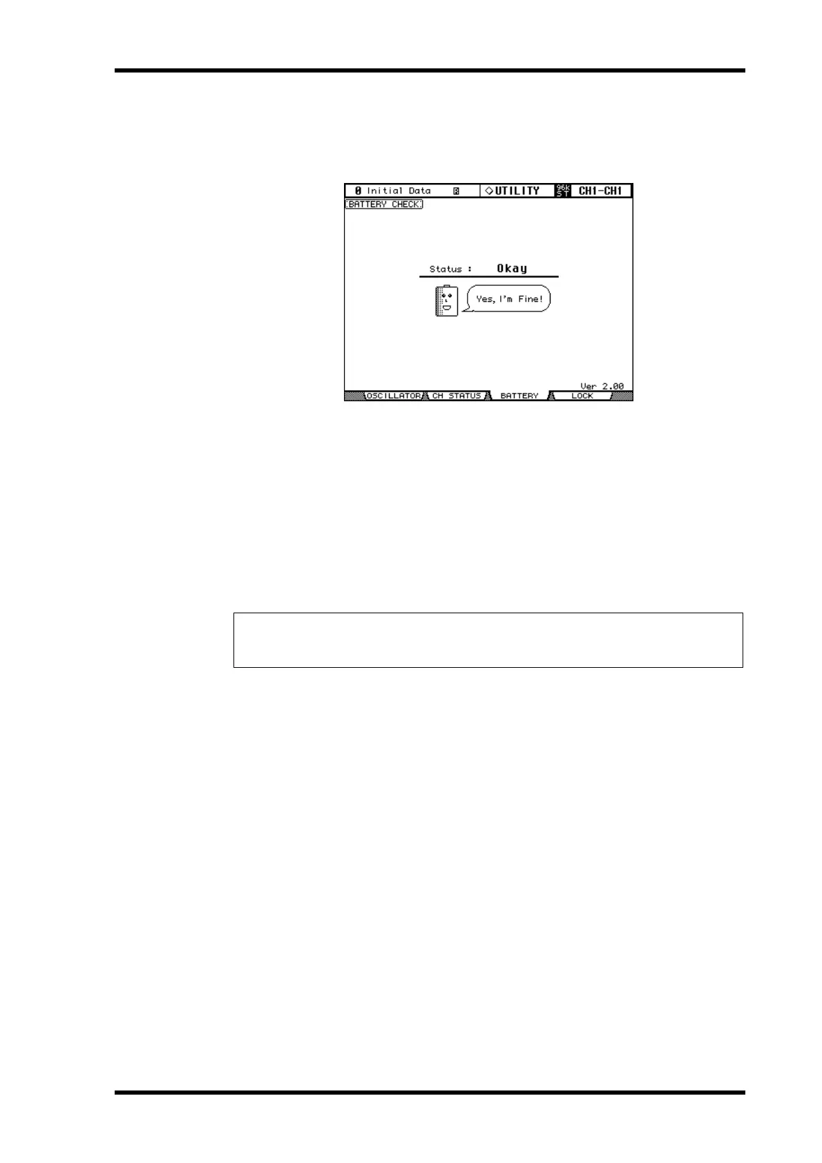 Use the DISPLAY ACCESS [UTILITY] button to locate the Battery Check page.