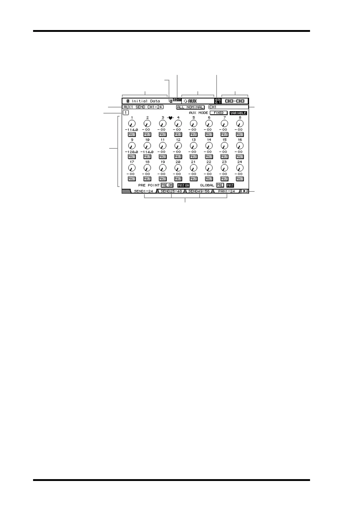 pages, the Aux Send pages, for example, it’s possible to edit Aux Send levels without having