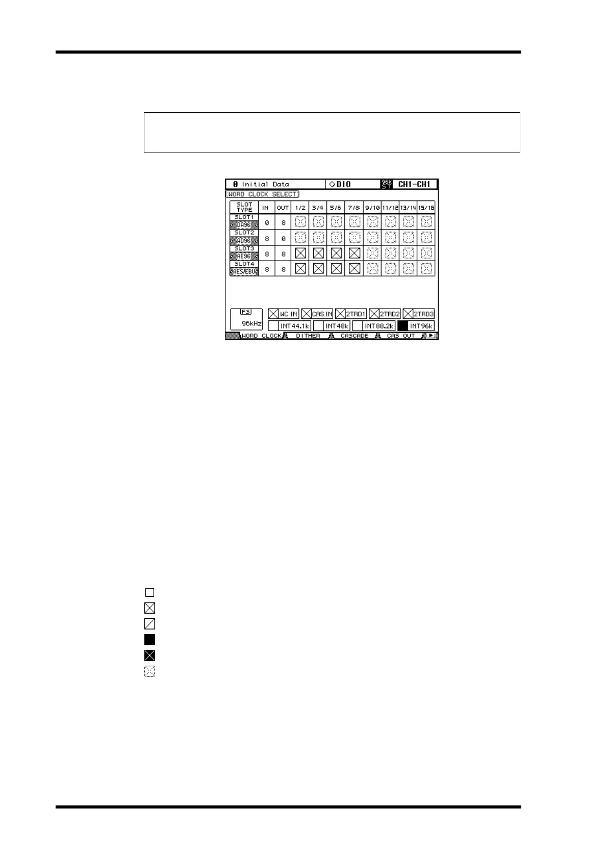 1 Use the DISPLAY ACCESS [DIO] button to locate the Word Clock Select page.