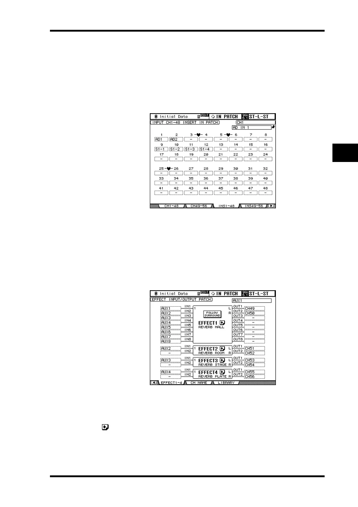 between two pages. The Input Channel 1–48 Insert In Patch page is shown below. The lay-