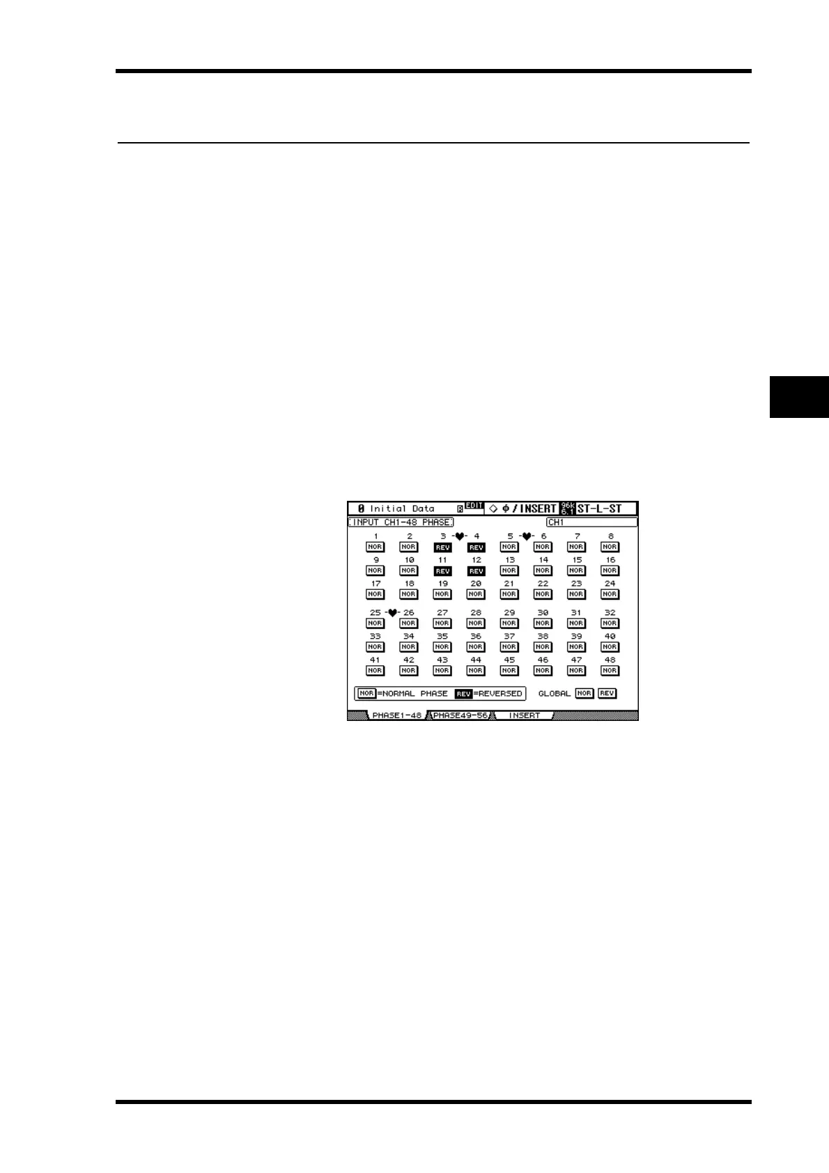 GLOBAL NOR/REV: These buttons allow you to set the phase of all Input Channels