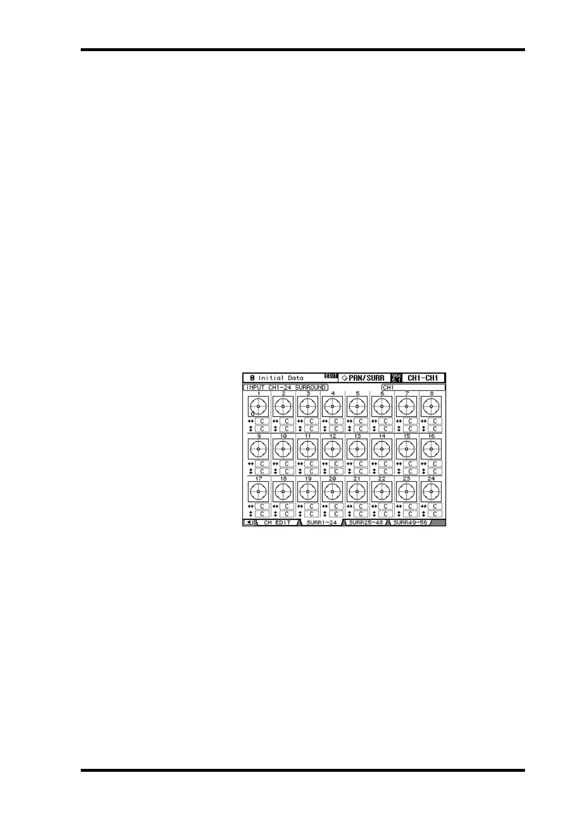 Input Channel 1–24 Surround page is shown below. The layout of the other two pages is the