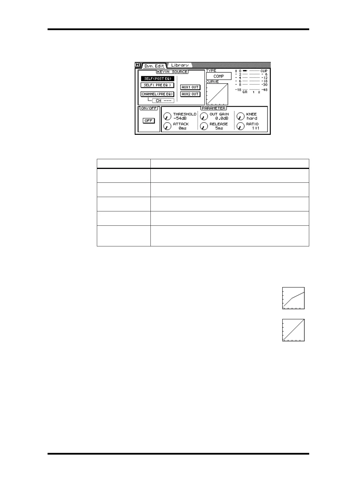 CURVE—This window shows the curve of the dynamics processor, pro-