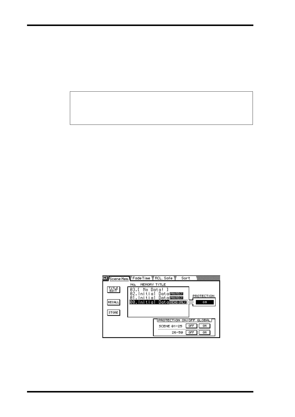 Scene memories can be write protected to prevent accidental data loss. See Write Pro-