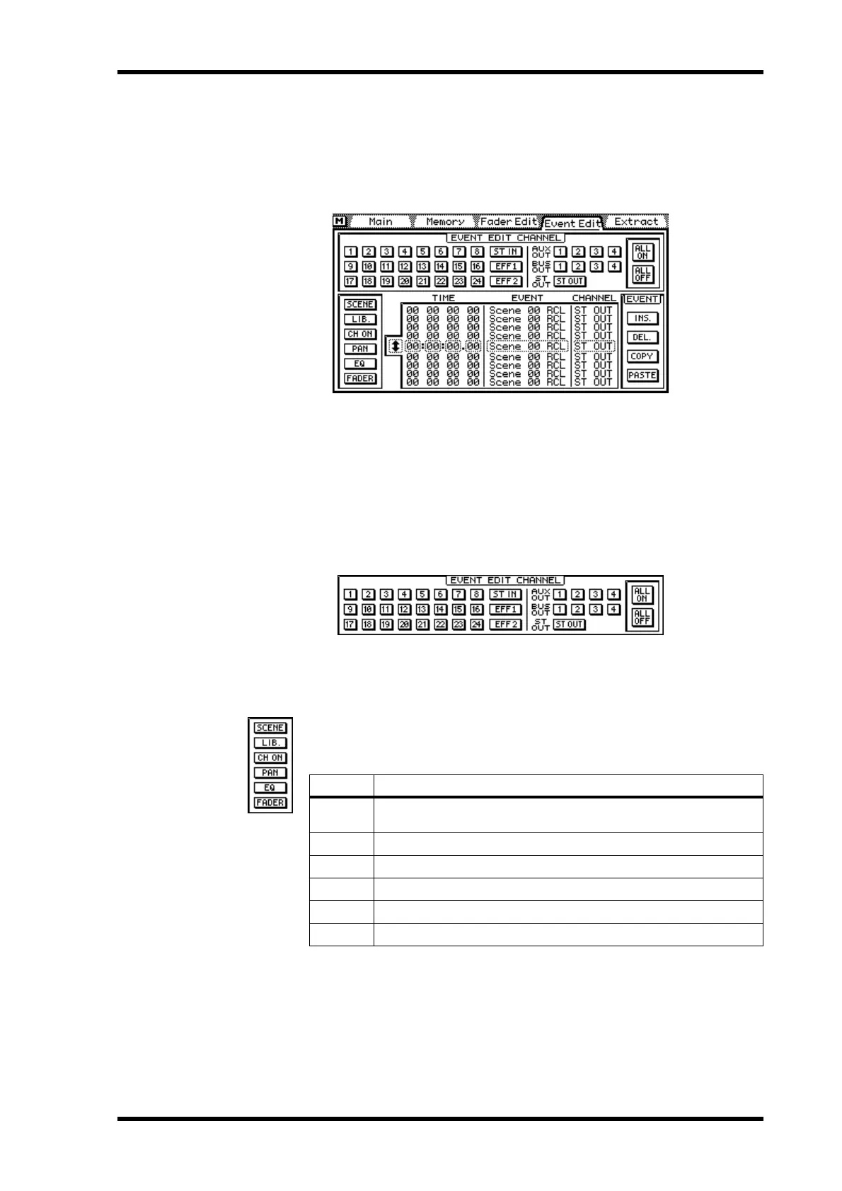 2. Use the cursor buttons to select an EVENT EDIT CHANNEL switch, and