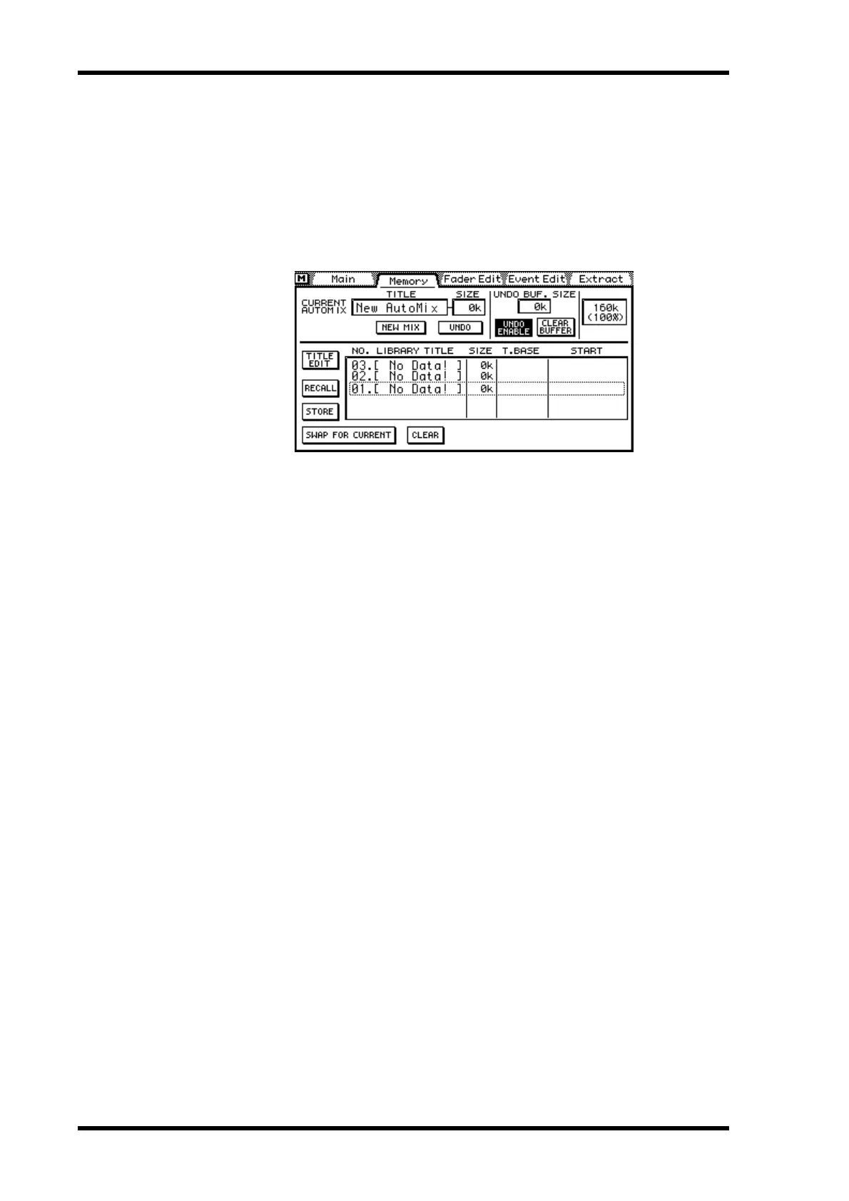 1. Use the [AUTOMIX] button to locate the Memory page.