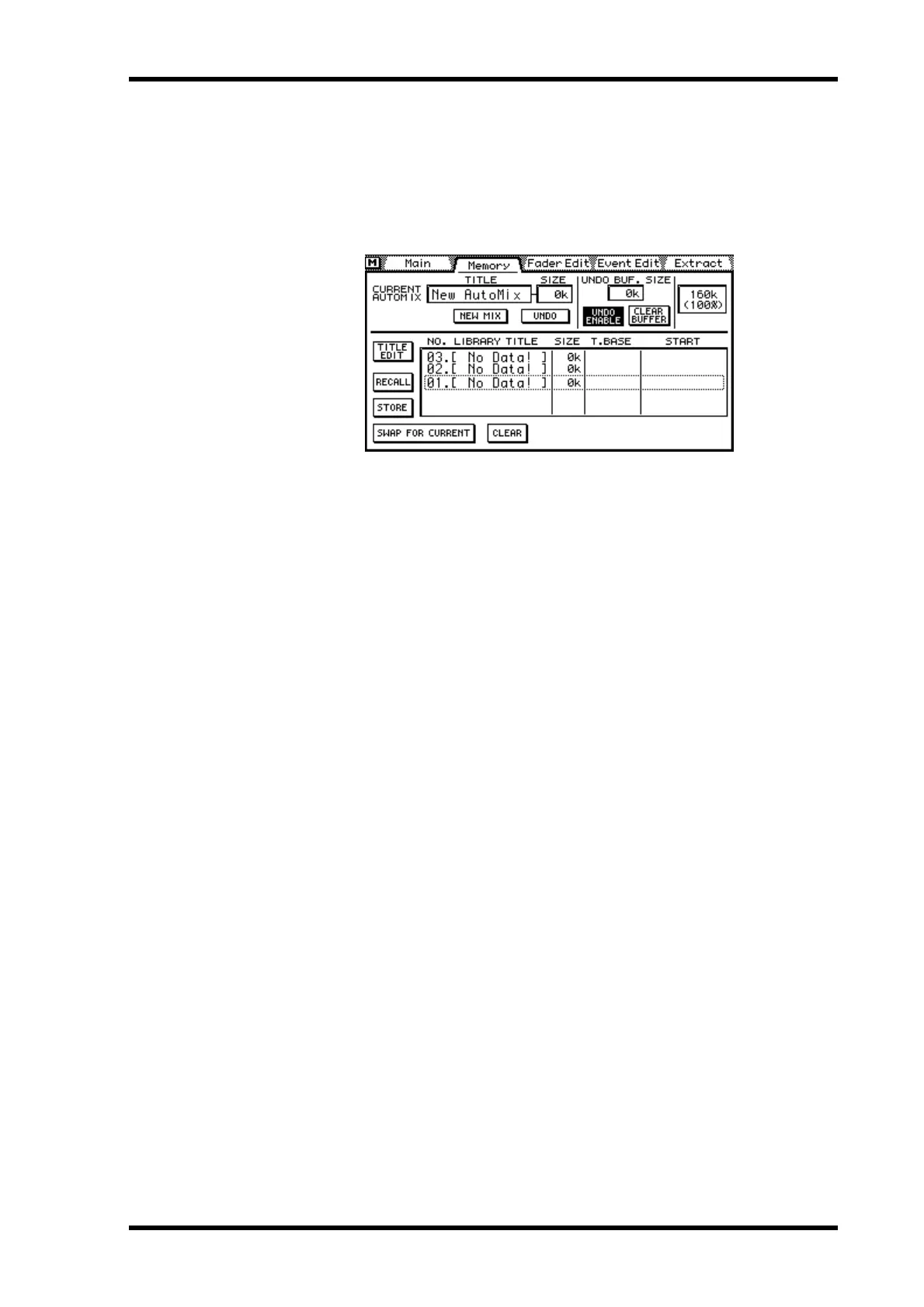 1. Use the [AUTOMIX] button to locate the Memory page.
