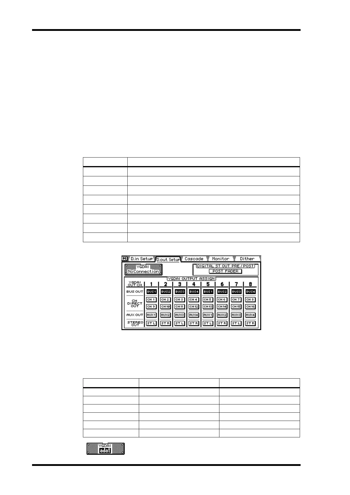 2. Use the cursor buttons to select the YGDAI OUTPUT ASSIGN switches,