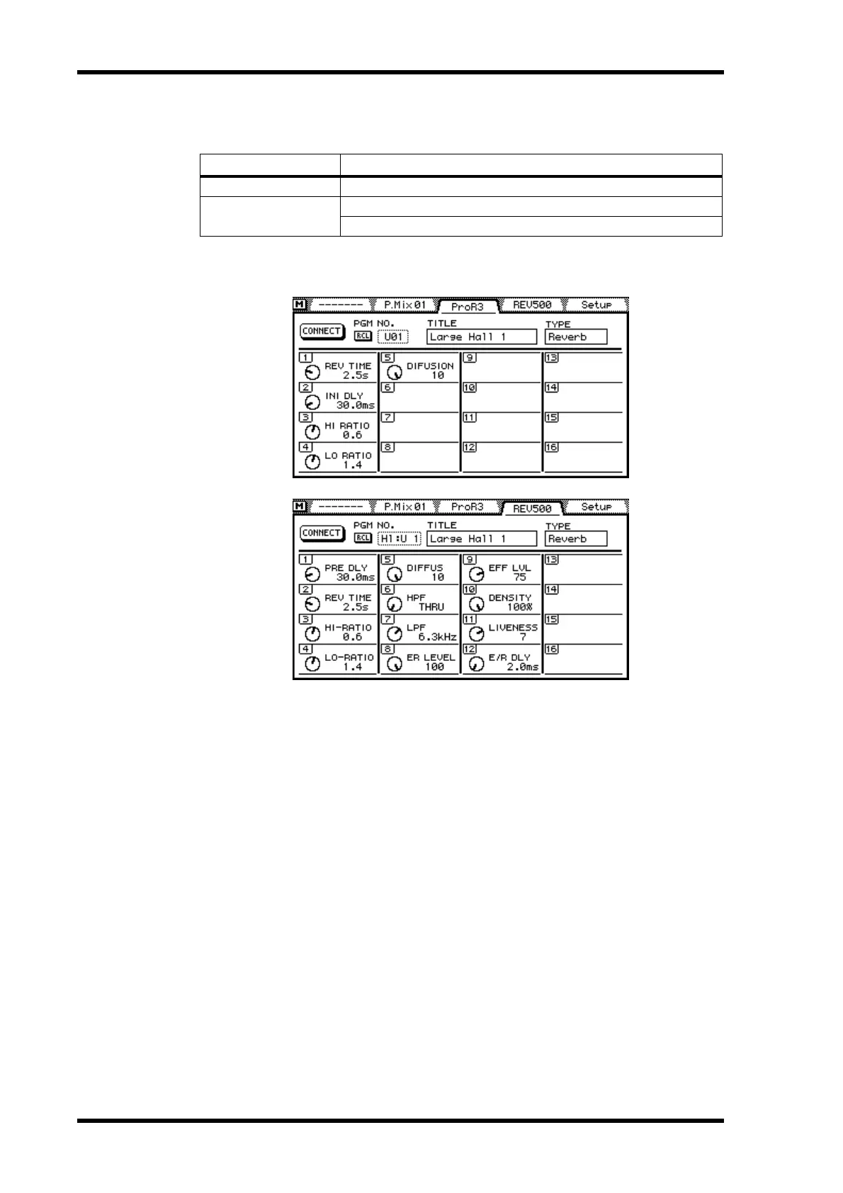 To recall a reverb program, select the PGM NO. parameter and use the PARAMETER