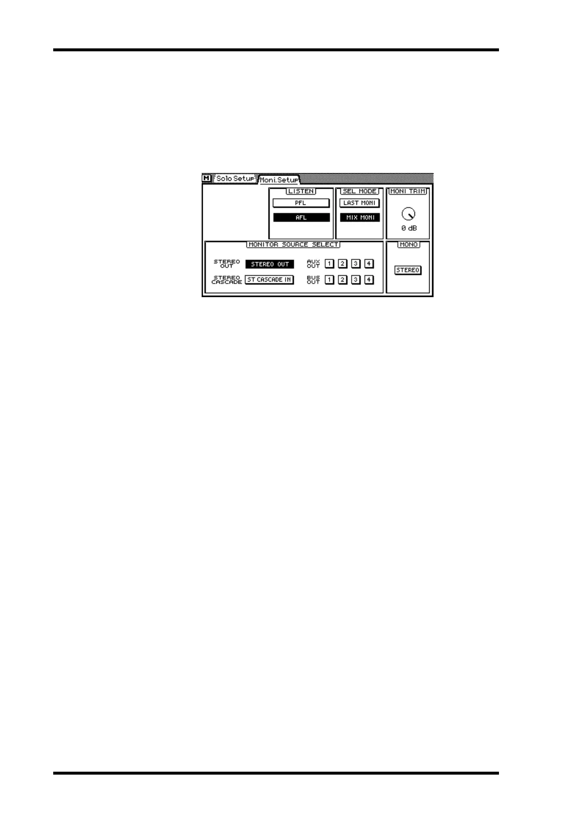 1. Use the [SOLO SETUP] button to locate the Moni.Setup page shown