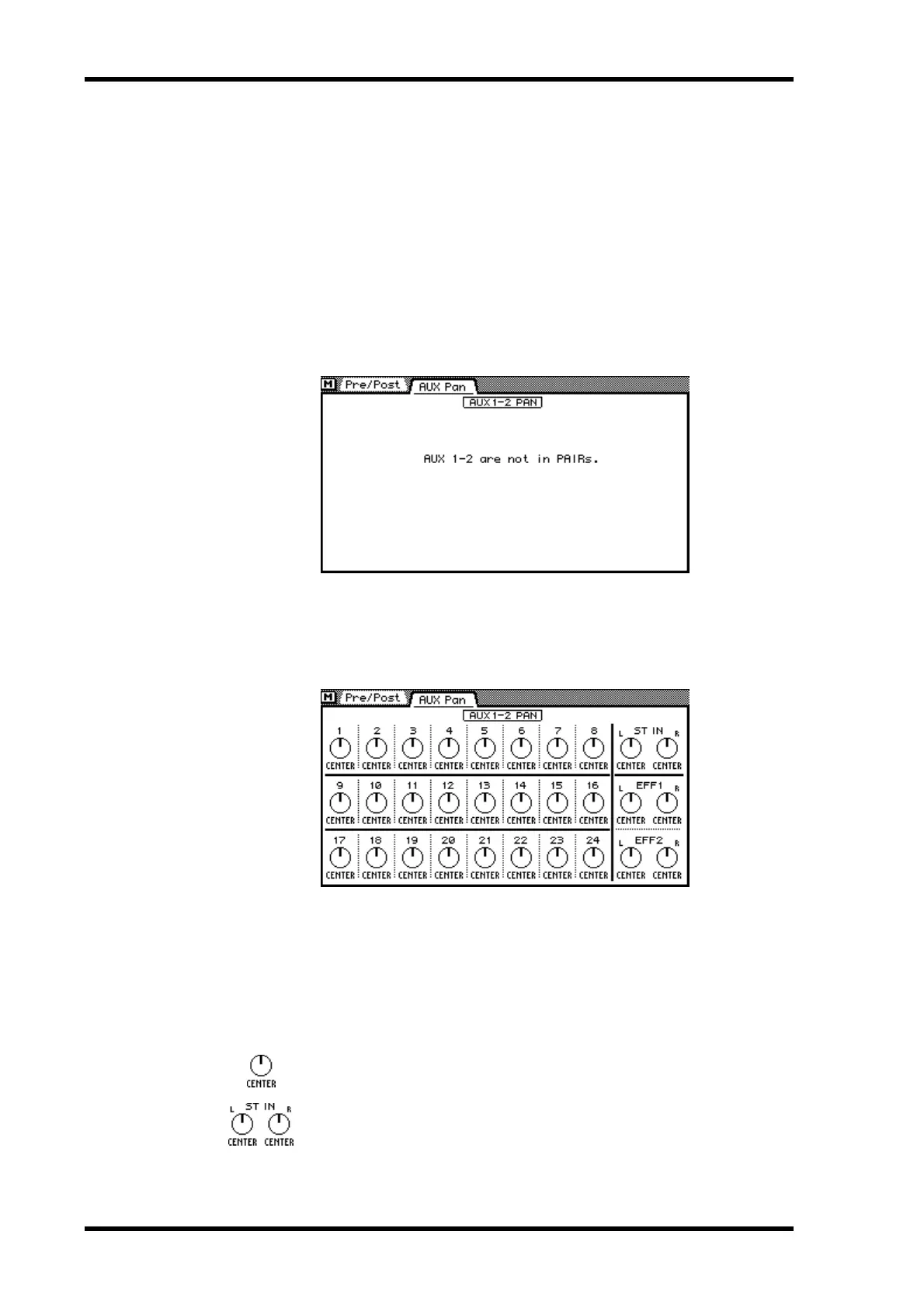 1. Use the [AUX 1] or [AUX 2] button to locate the AUX 1–2 Pan page, or