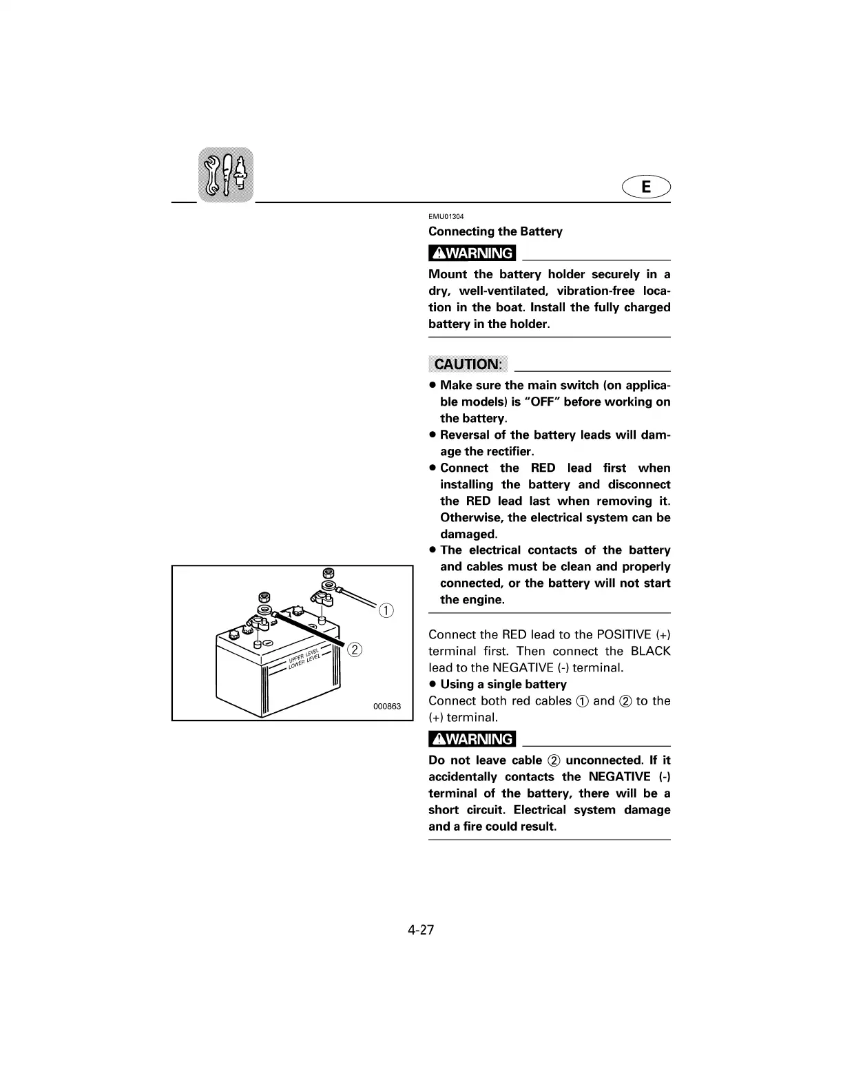 Yamaha 115Z - Connecting the Battery