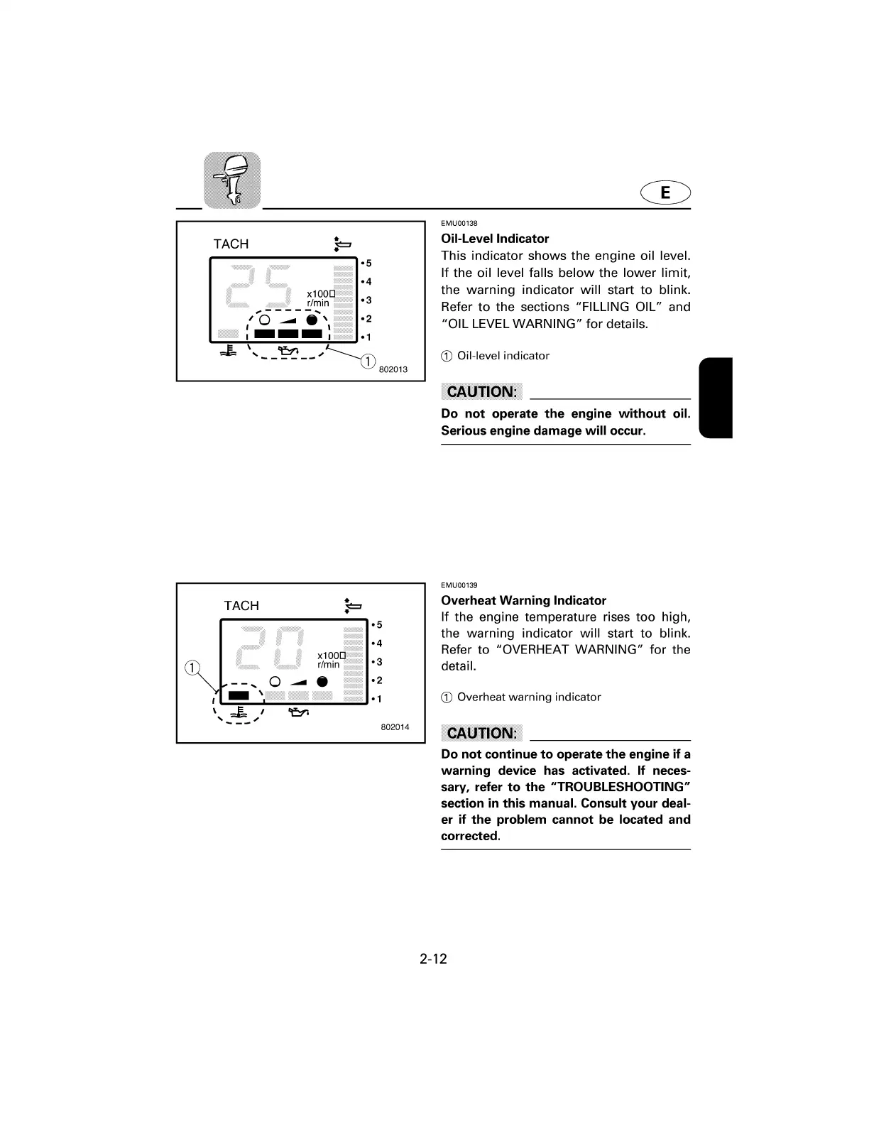Yamaha 115Z - Oil-Lever Indicator; Overheat Warning Indicator