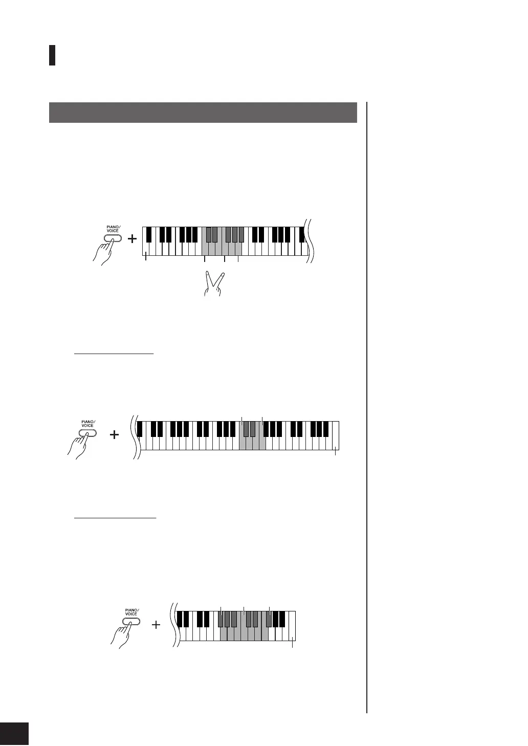 While holding down the [PIANO/VOICE] button, press two keys in the range of