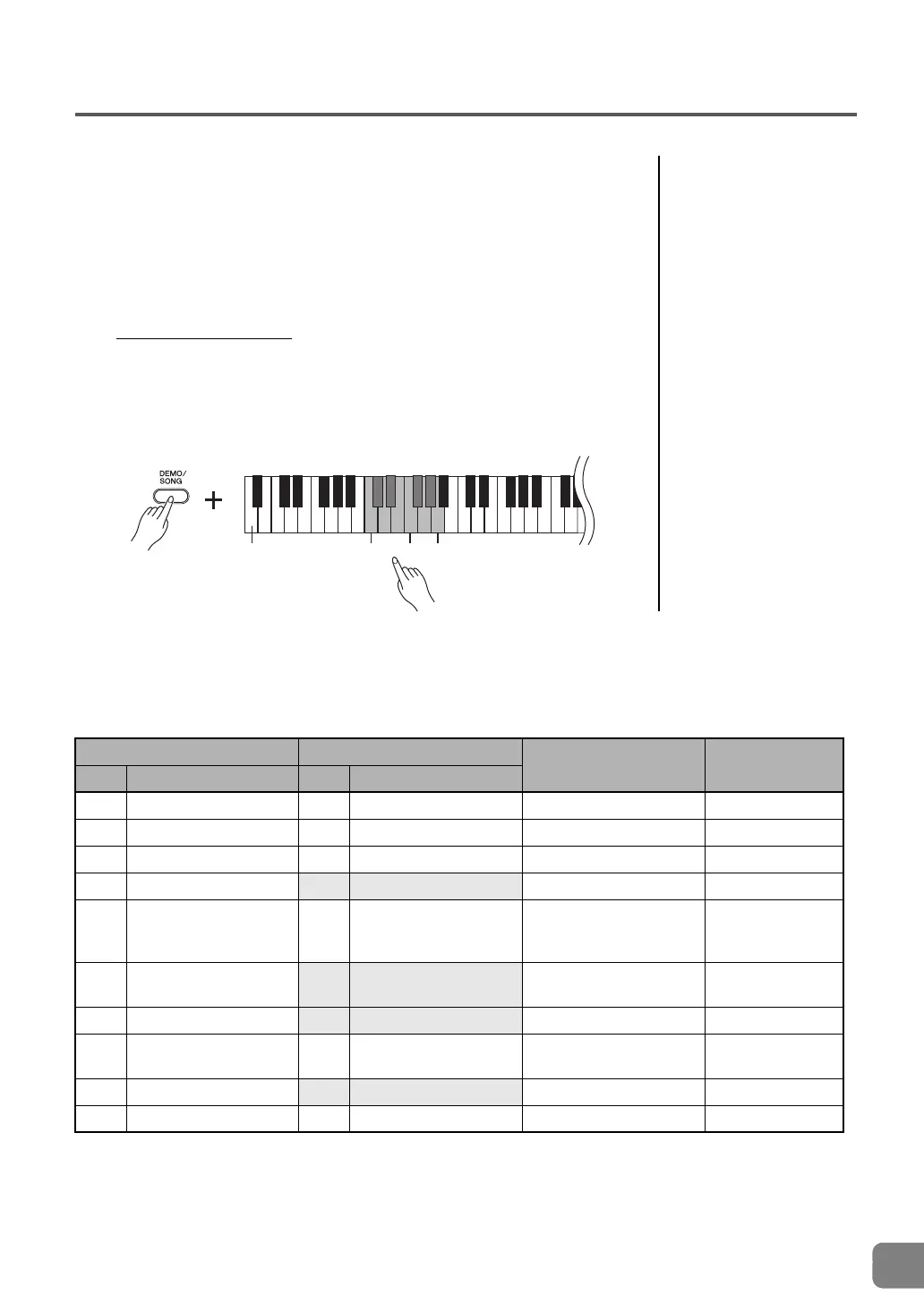 demo songs, press and hold down the [DEMO/SONG] button, then press one of the