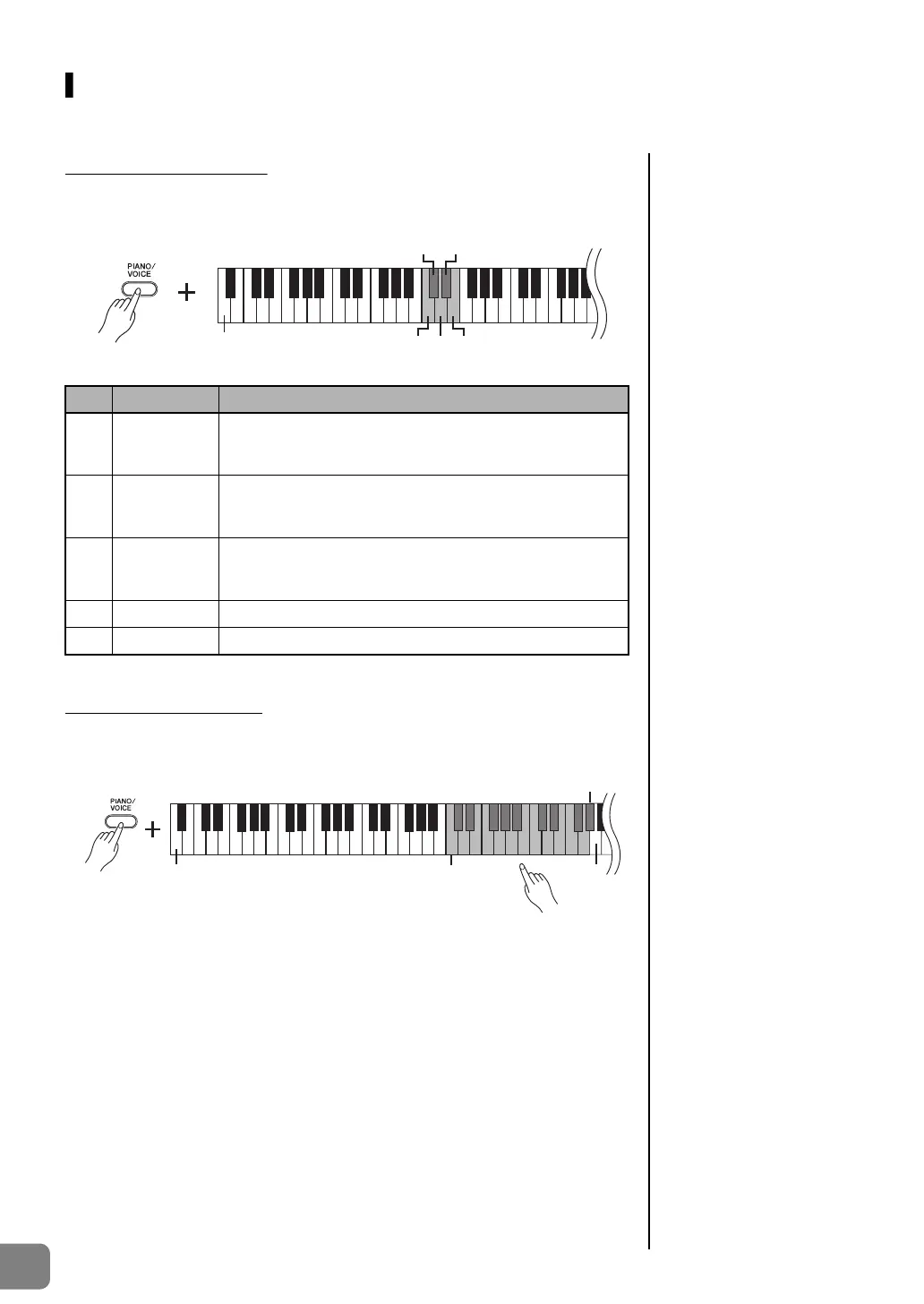 While holding down the [PIANO/VOICE] button, press one of the C2–E2 keys to select a