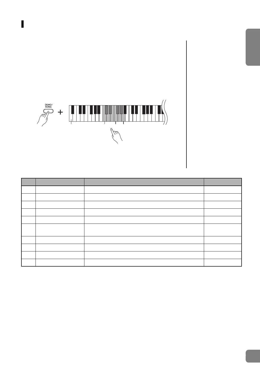 specific Demo Song, press and hold down the [DEMO/SONG], then press one of