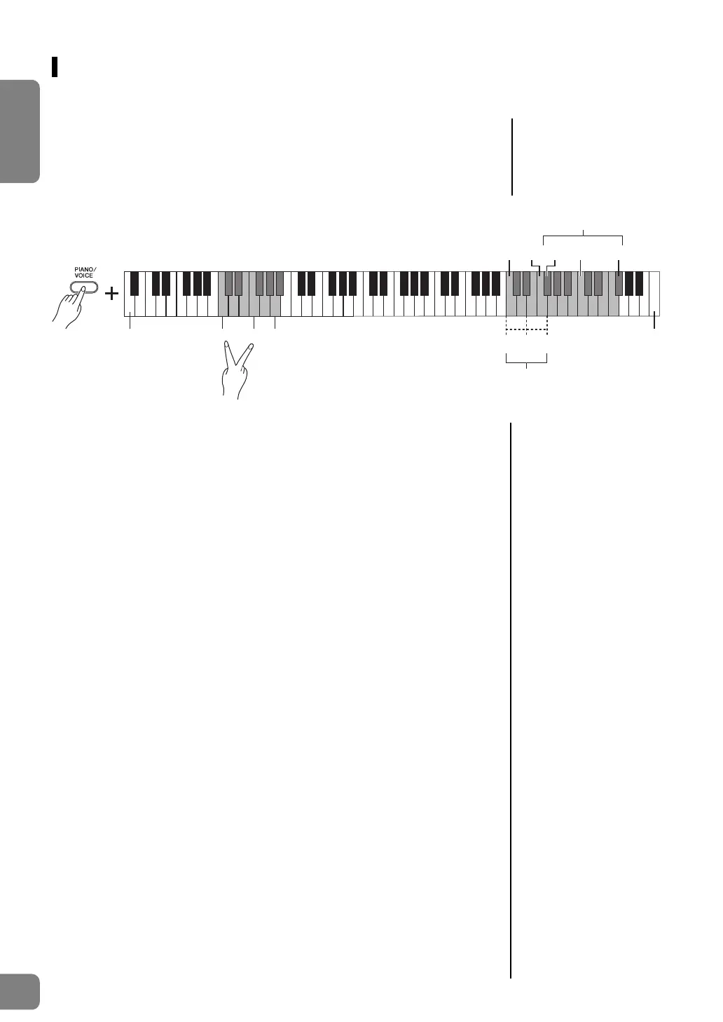 While holding down [PIANO/VOICE], simultaneously hold down two keys between