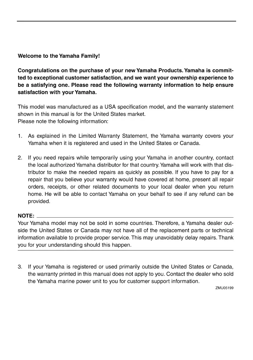 Yamaha 150 - Important Warranty Information if You Use Your Yamaha Outside the Usa or Canada