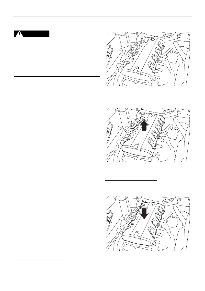(3) Lift up the engine cover and remove it.