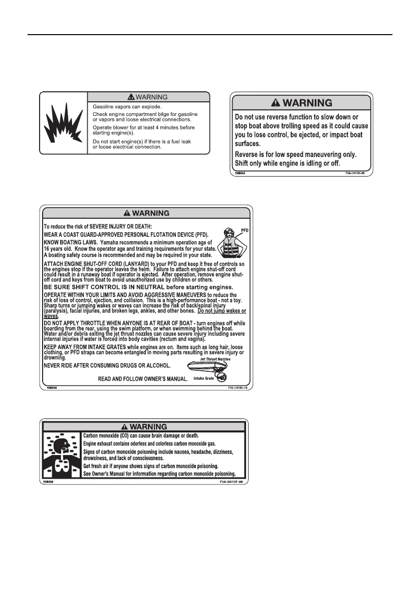 If any of these labels is damaged or missing, contact a Yamaha Boat Dealer for a replacement.