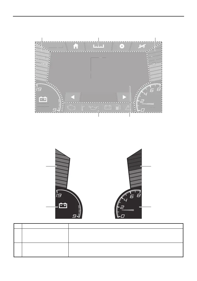 1 Fuel level bar graph Displays the amount of fuel remaining in the fuel tank. Depending