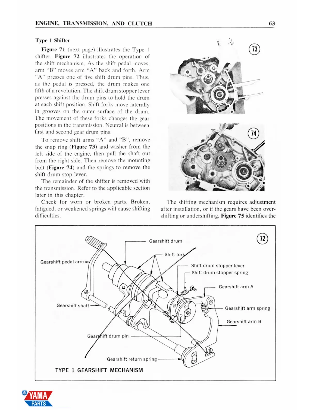 Yamaha 1967 YL1-E - Type 1 Shifter; Type 1 Gearshift Mechanism