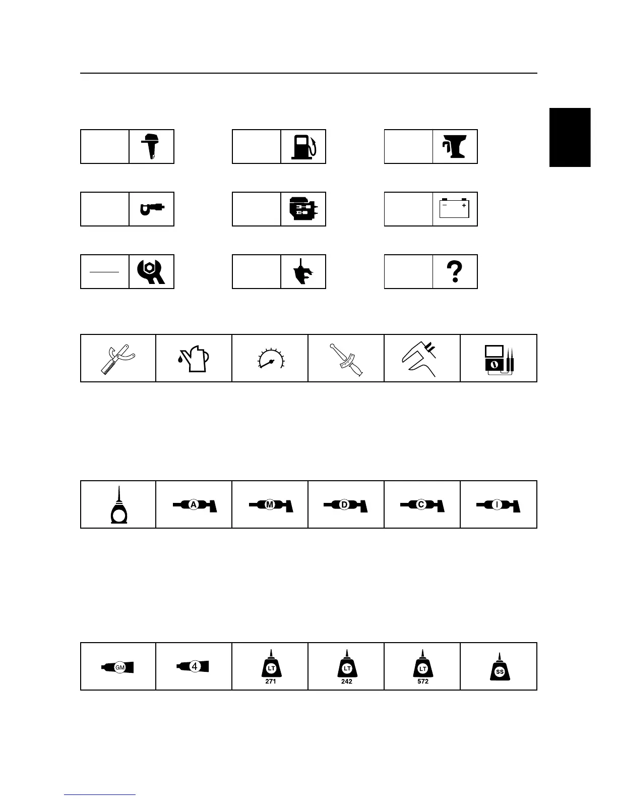 Symbols C to H in an exploded diagram indicate the type of sealant or locking agent and the appli-