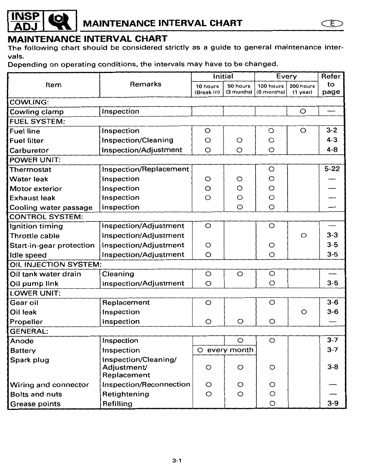 Yamaha 20ESHT2 - MAINTENANCE INTERVAL CHART