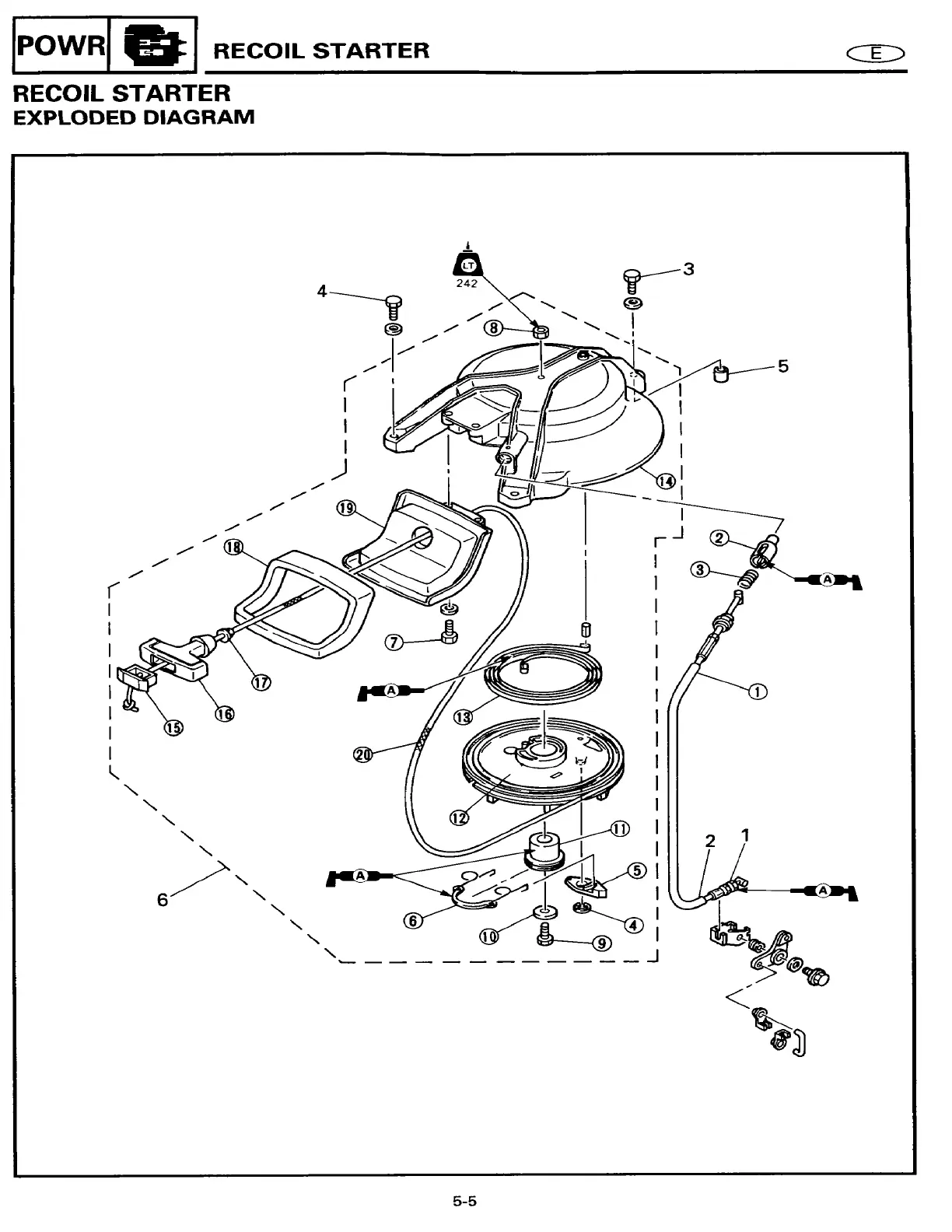 Yamaha 20ESHT2 - RECOIL STARTER; EXPLODED DIAGRAM