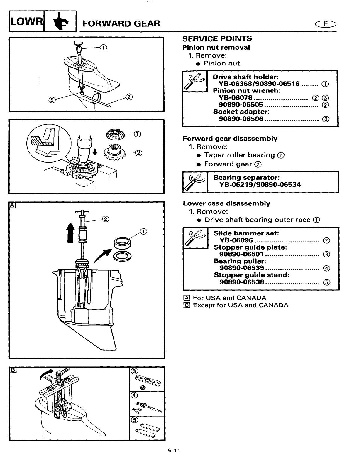 Yamaha 20ESHT2 - SERVICE POINTS; Pinion nut removal; Forward gear disassembly; Lower case disassembly