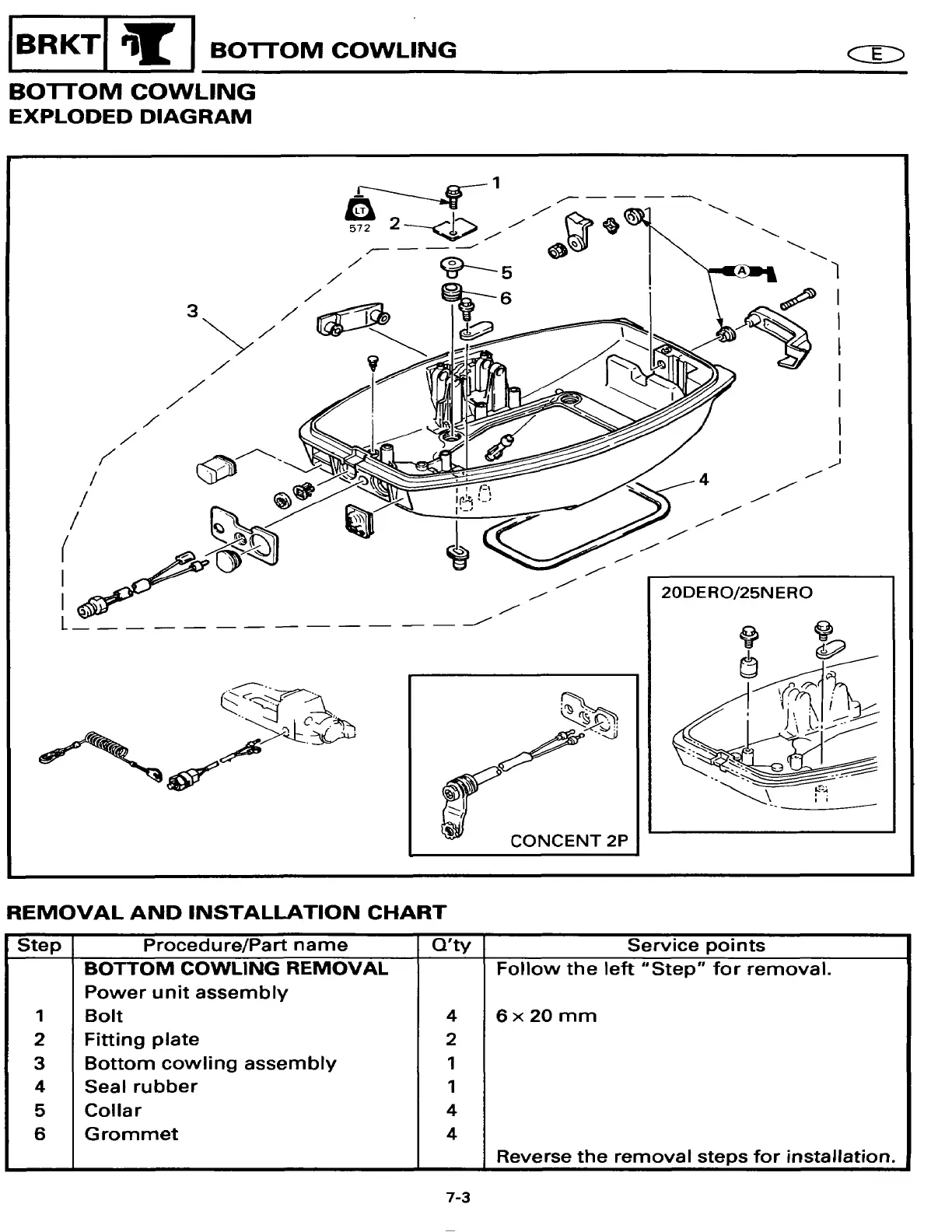 Yamaha 20ESHT2 - BOTTOM COWLING; EXPLODED DIAGRAM; REMOVAL AND INSTALLATION CHART