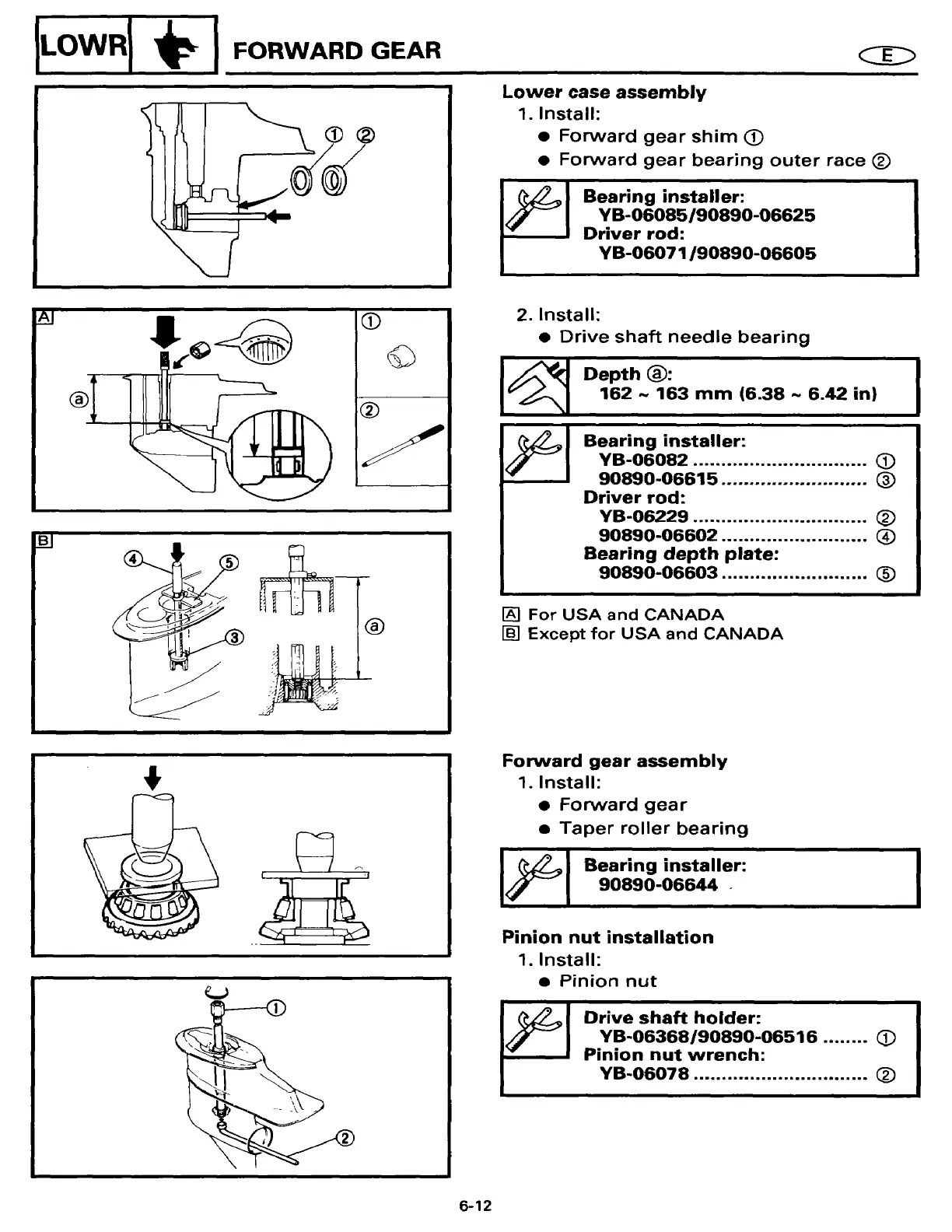 Yamaha 20ESHT2 - Lower case assembly; Forward gear assembly; Pinion nut installation