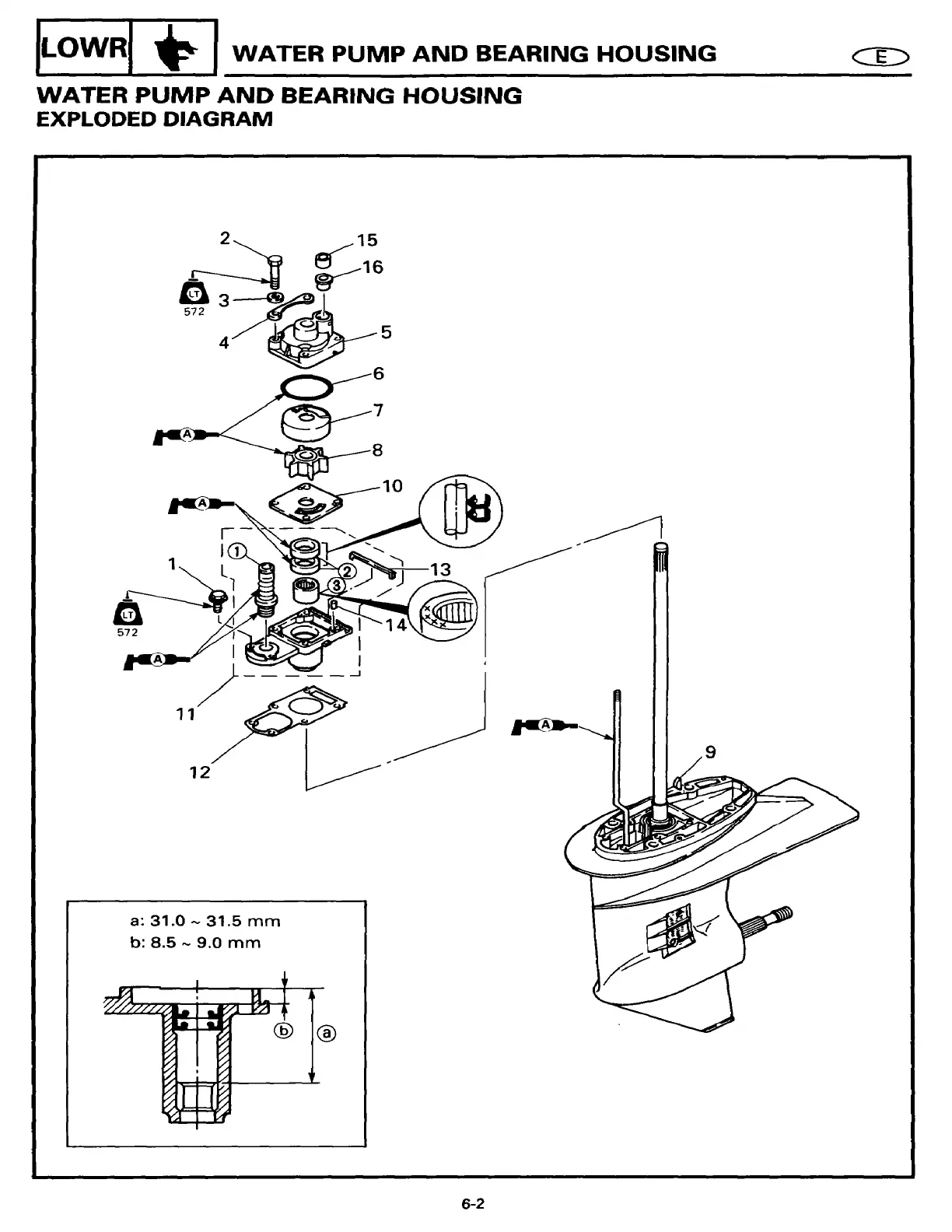 Yamaha 20ESHT2 - WATER PUMP AND BEARING HOUSING; EXPLODED DIAGRAM