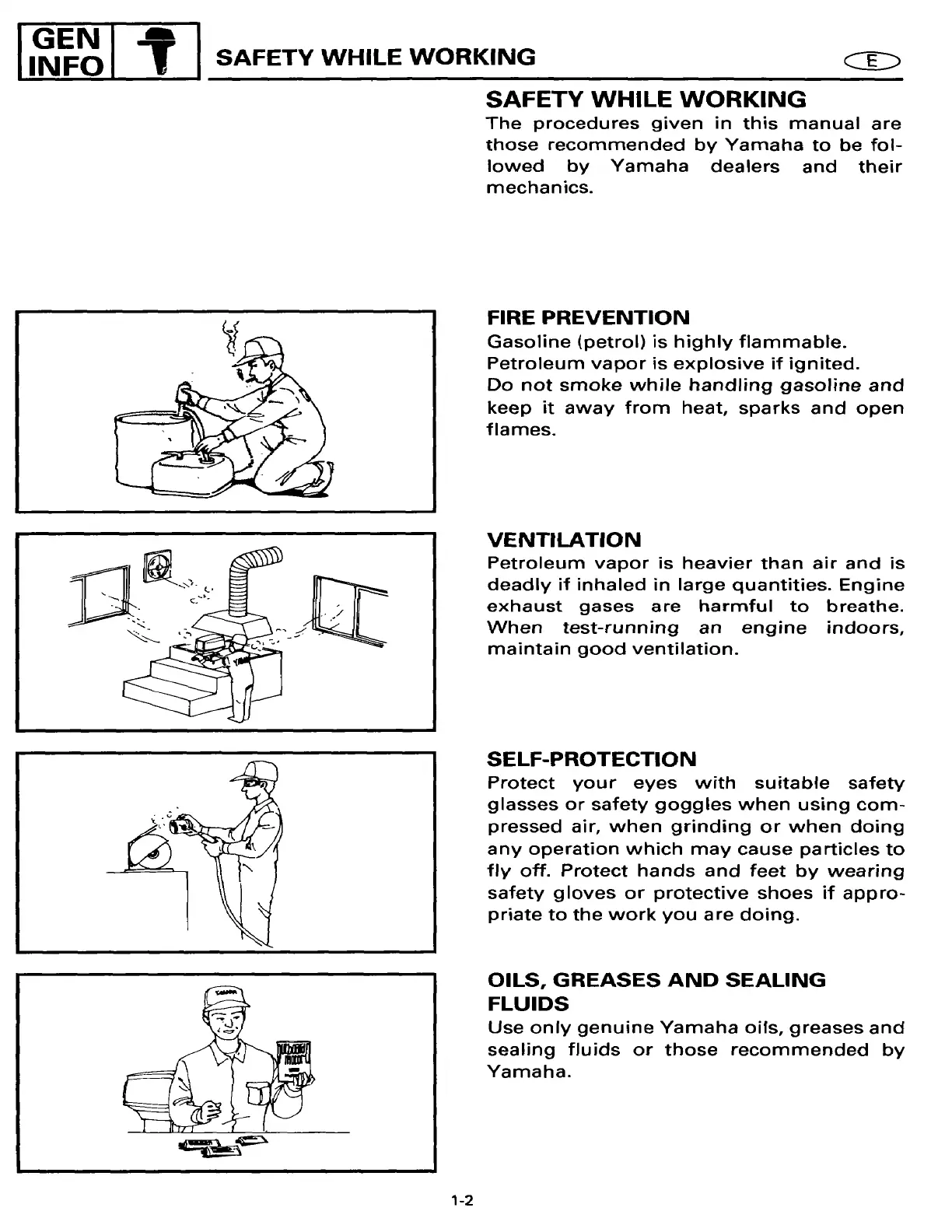 Yamaha 20ESHT2 - SAFETY WHILE WORKING; FIRE PREVENTION; VENTILATION; SELF-PROTECTION