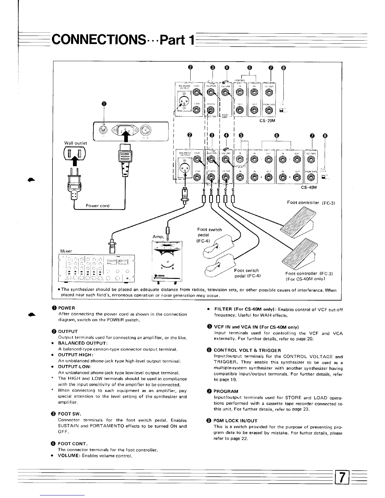 Yamaha 20M - Connections - Part 1; Power, Output, and Pedal Connections; Signal Input;Output Terminals