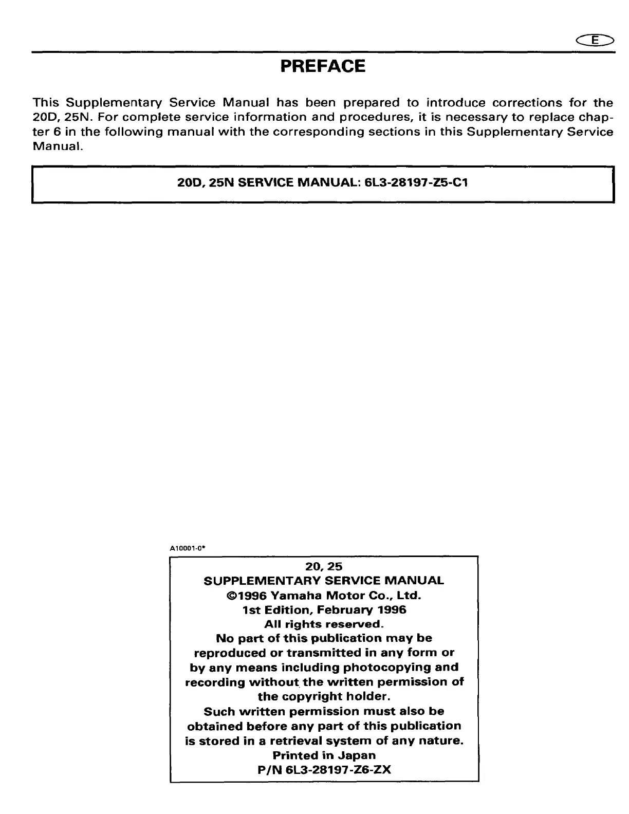Yamaha 20MSH - SUPPLEMENTARY SERVICE MANUAL; PREFACE