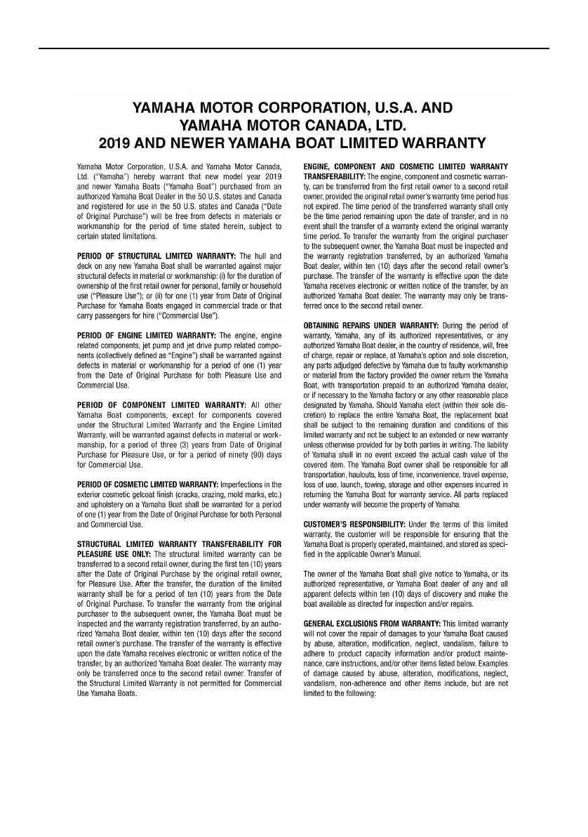 Yamaha 255XE 2021 - Consumer Information; Limited Warranty
