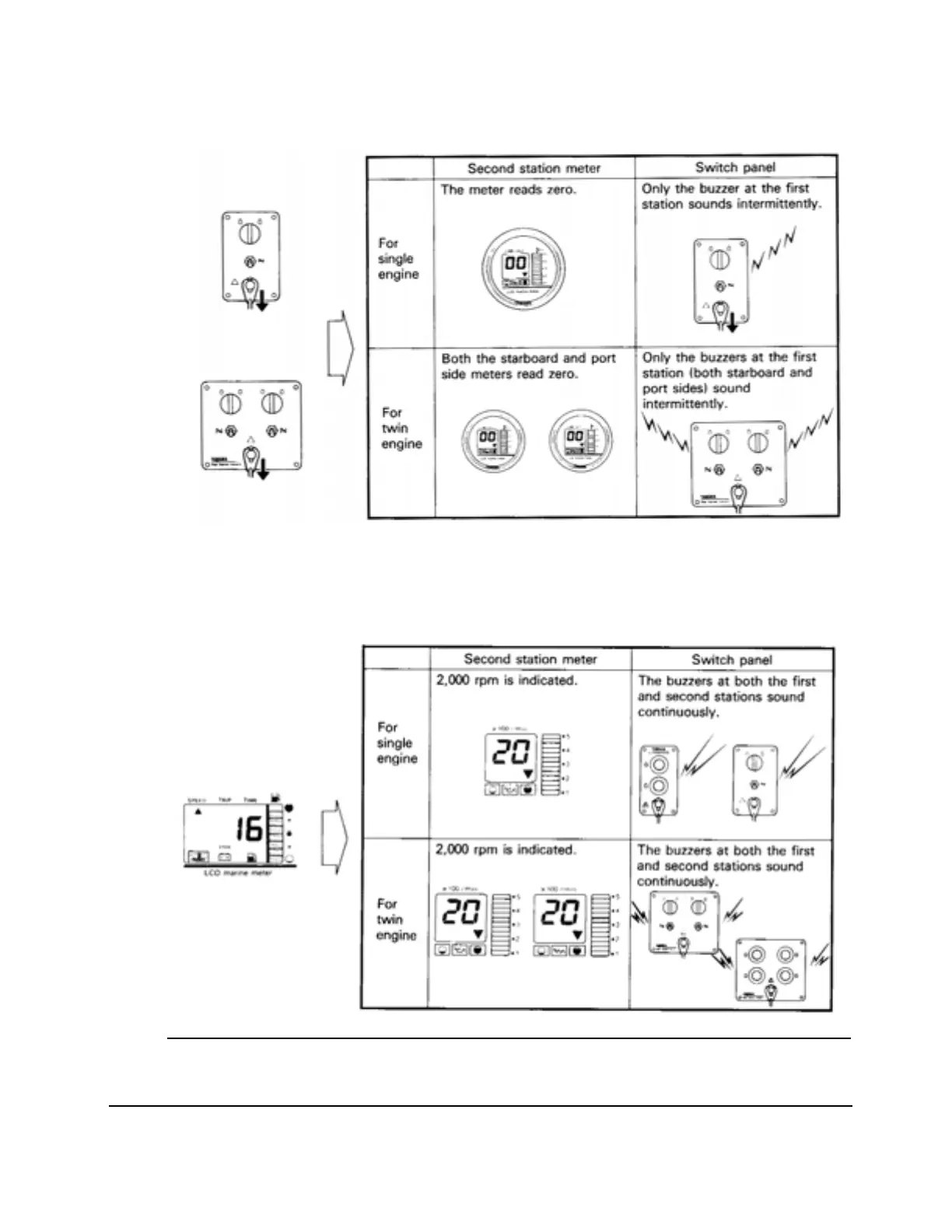 In the case of a twin engine system, the buzzers for both the starboard and port side engines sound