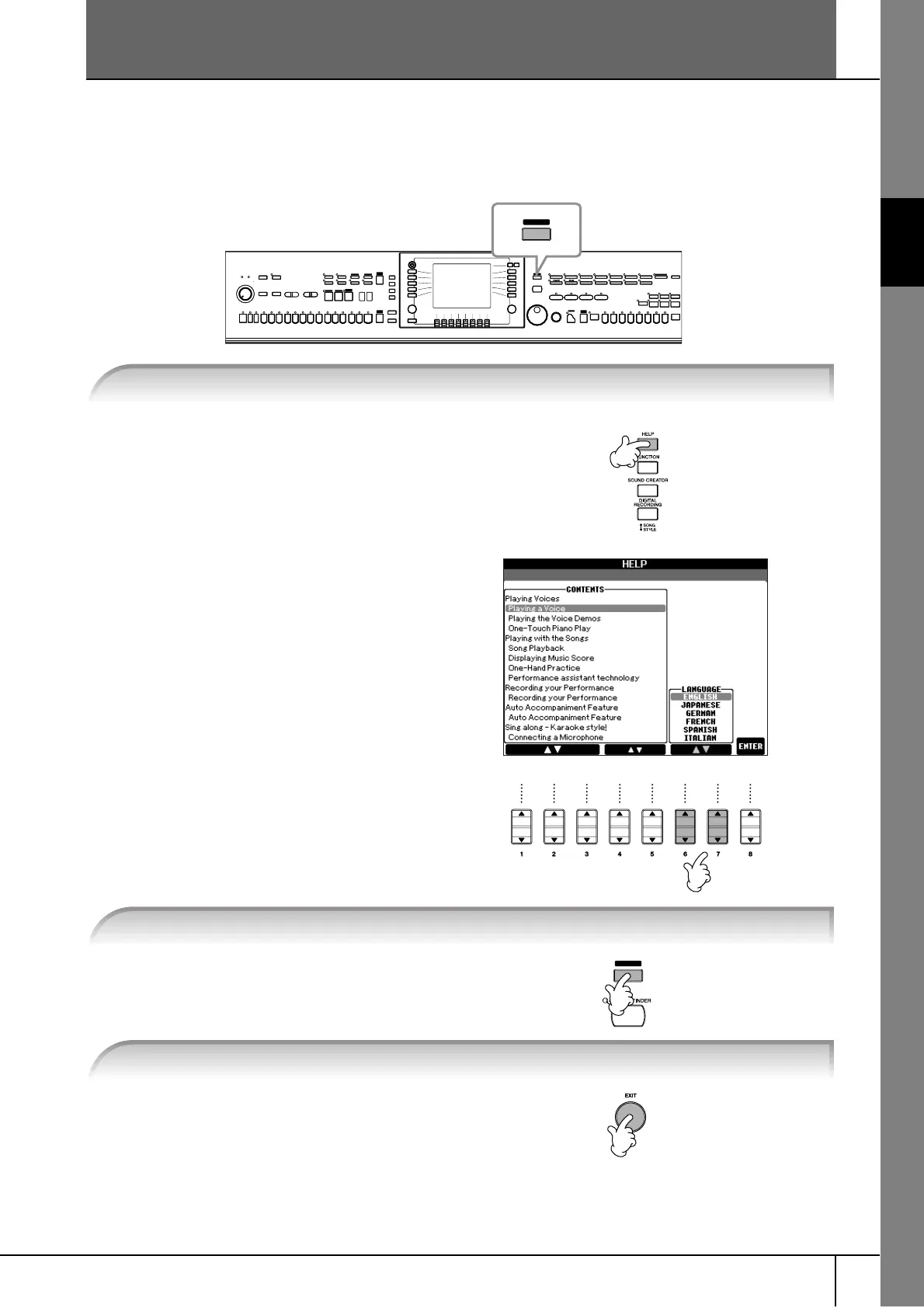 1 Press the [HELP] button to call up