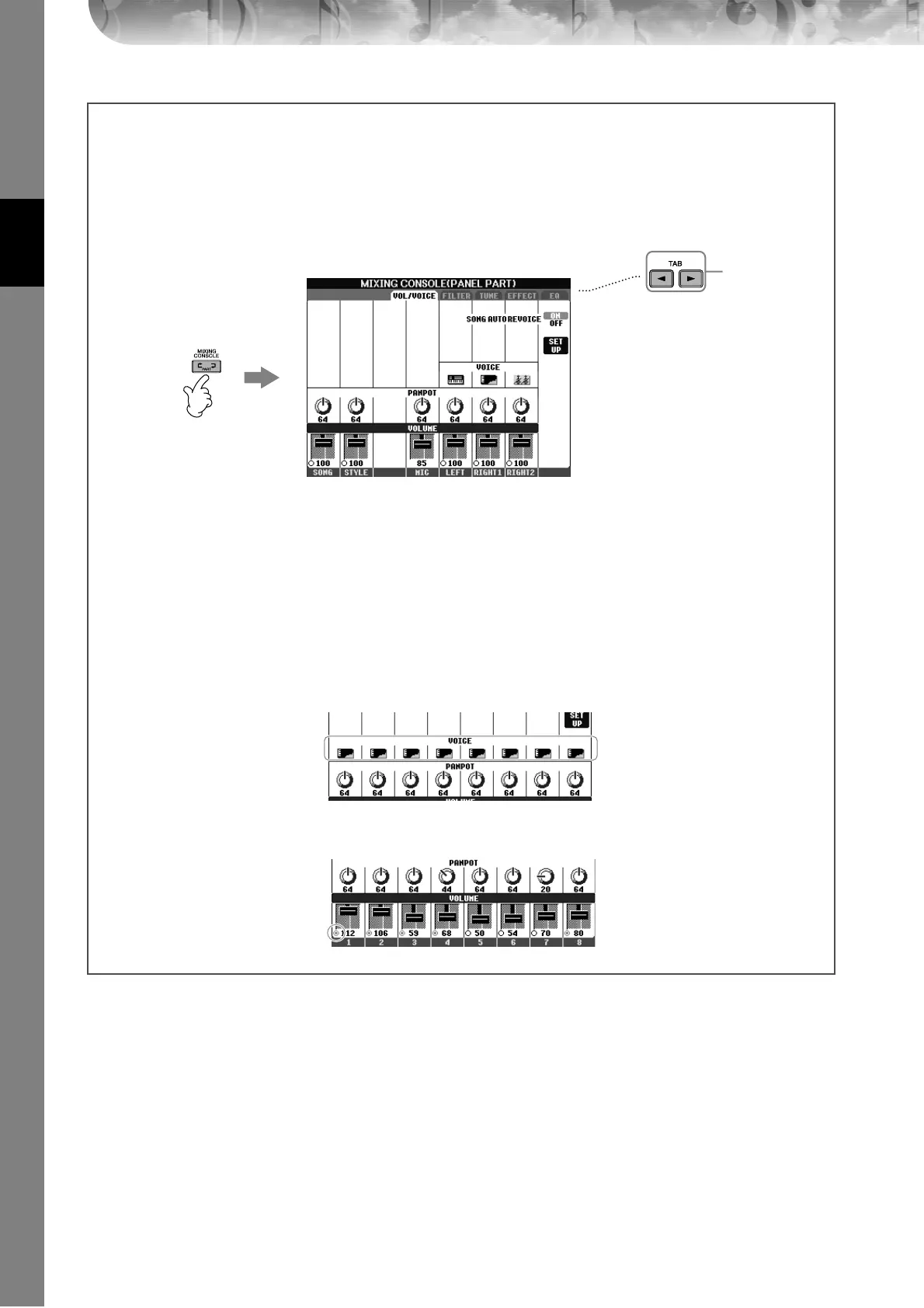 ] buttons to select the VOL/VOICE tab.