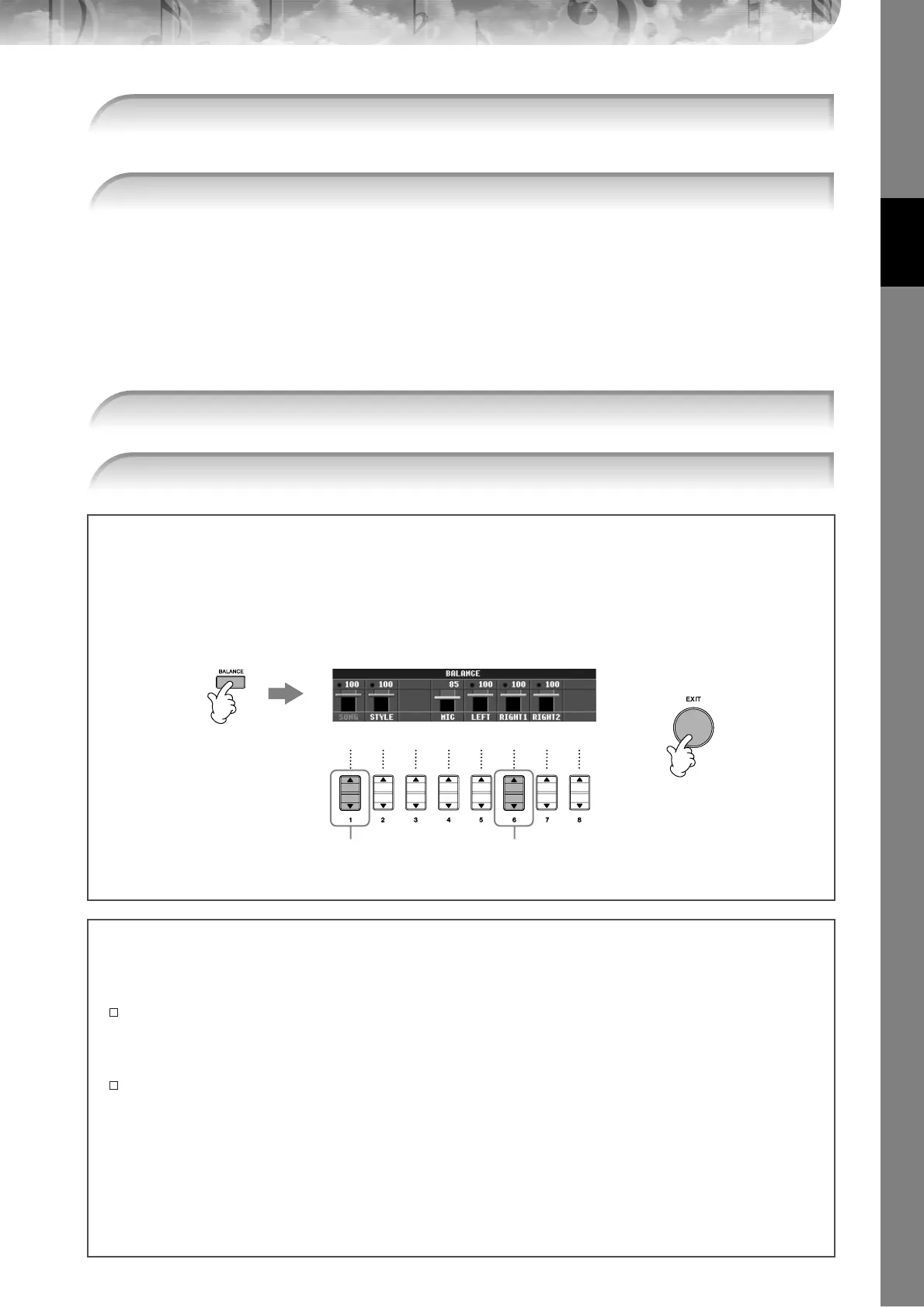 ] button. To adjust the keyboard (RIGHT 1) volume, press the [6
