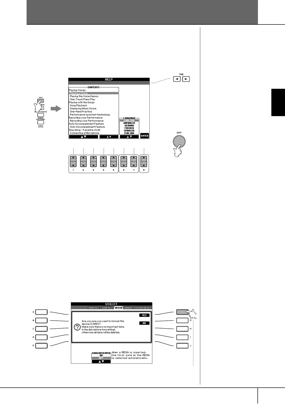 1 Press the [HELP] button to call up the Help display.