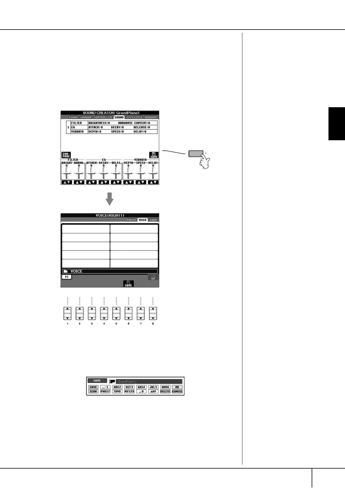 or SOUND CREATOR display, press the [SAVE] display button.
