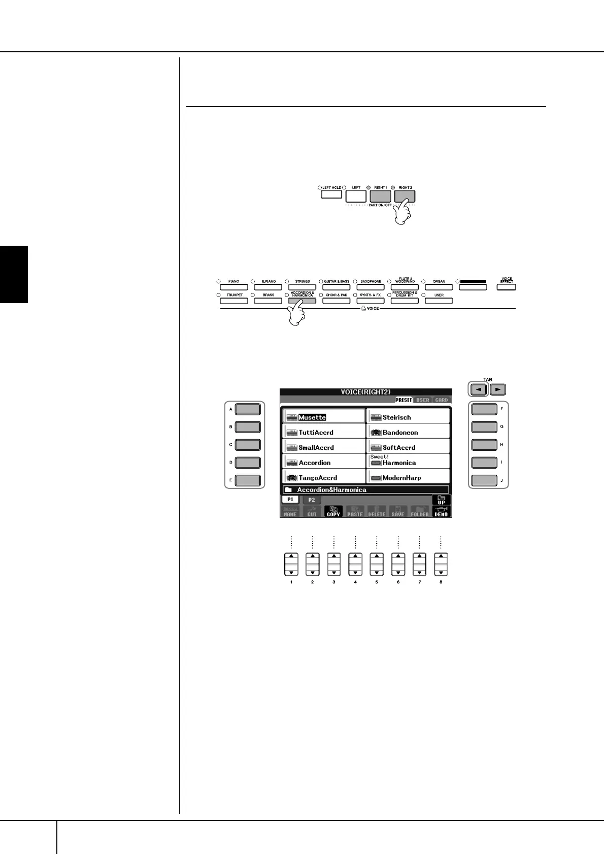 5 Press one of the [A]–[J] buttons to select a Voice.