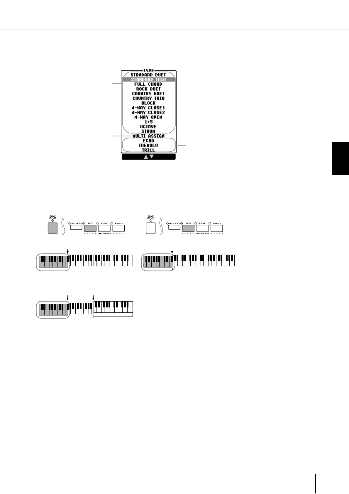 section of the keyboard to separate parts (Voices). Both of the keyboard part [RIGHT