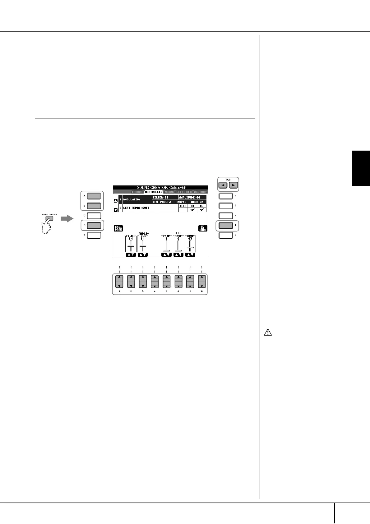 2 Press the [SOUND CREATOR] button to call up the SOUND CREATOR