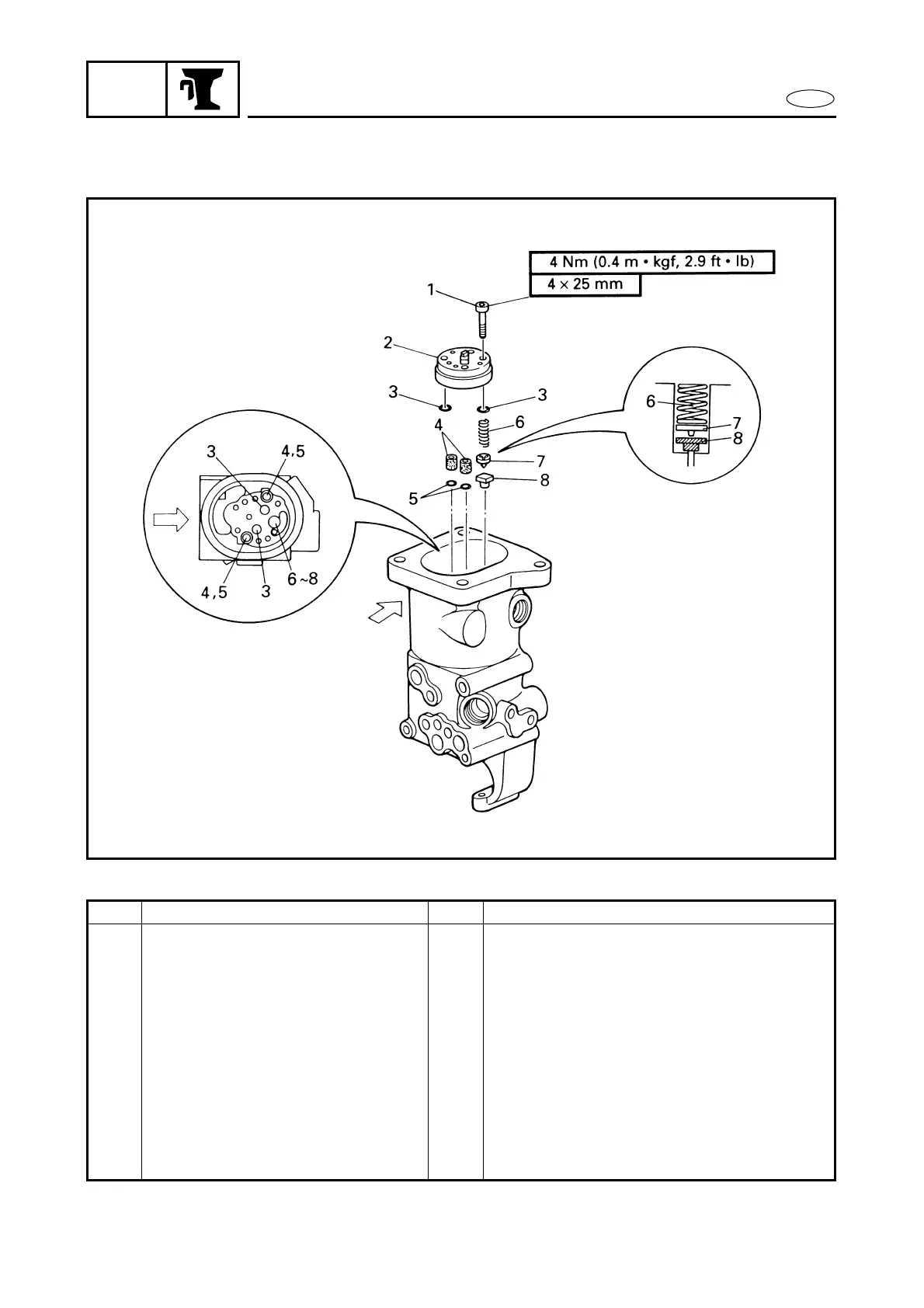Yamaha 30D - Gear Pump Exploded Diagram; Gear Pump Removal and Installation Chart
