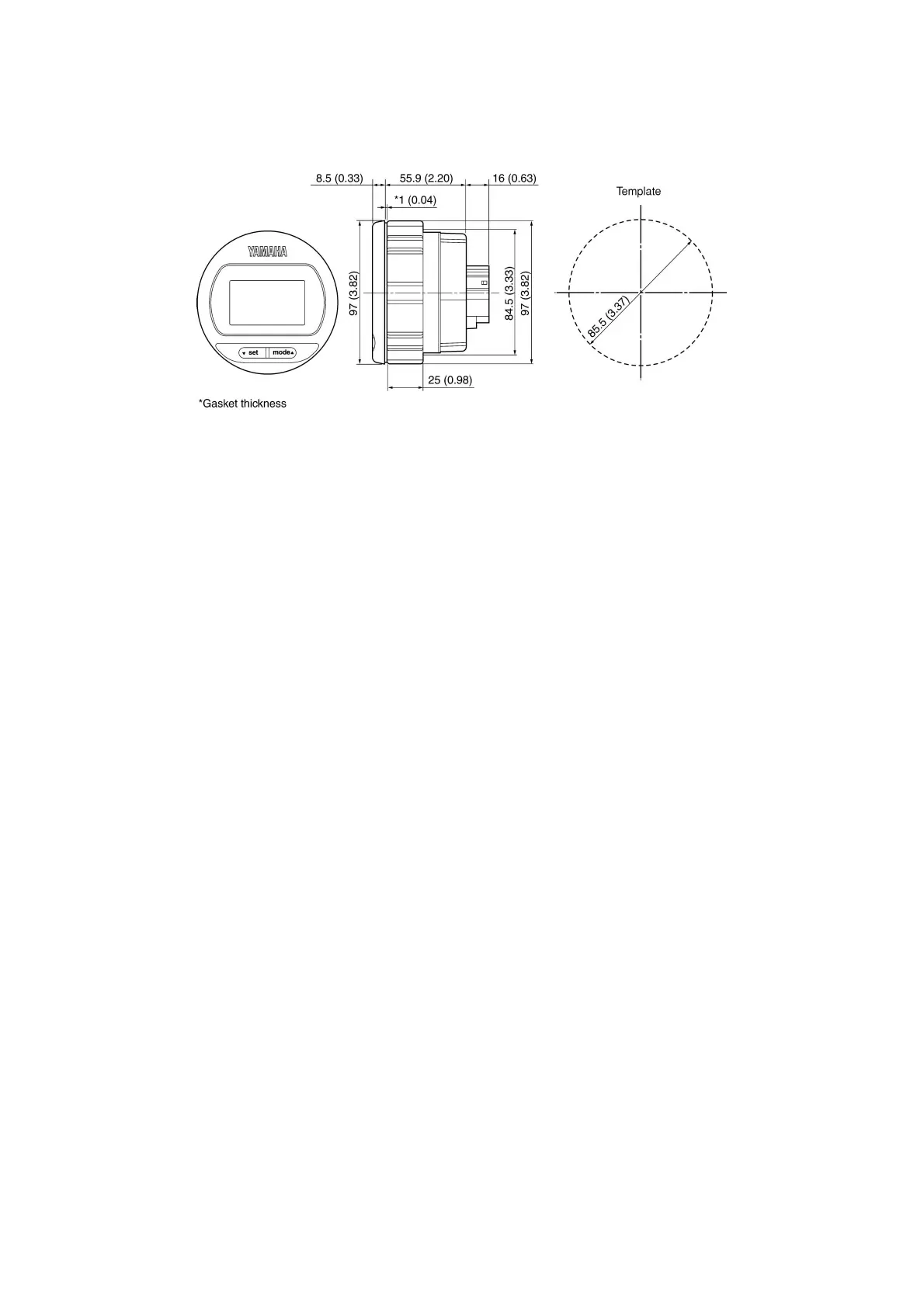 Yamaha 30DE - Round Style Gauge Dimensions