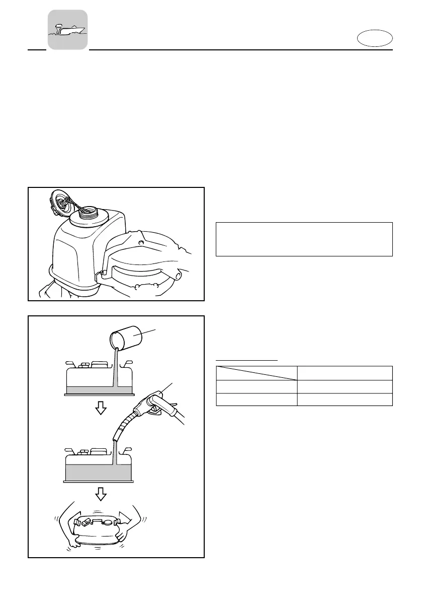 Yamaha 3A - Filling Fuel and Engine Oil; Filling Fuel; Gasoline (Petrol) and Oil Mixing